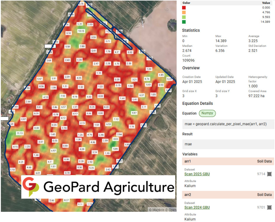 The usage of `geopard.calculate_per_pixel_mae(dataset_1, dataset_2)` with parameters explanation is documented [here](https://docs.geopard.tech/geopard-tutorials/product-tour-web-app/equation-based-analytics/catalog-of-custom-functions#calculate_per_pixel_mae).