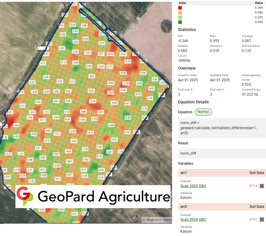 Two soil scanner datasets with potassium for 2024 and 2025 were chosen.
