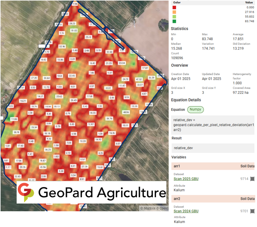 The usage of `geopard.calculate_per_pixel_relative_deviation(dataset_1, dataset_2)` with parameters explanation is documented [here](https://docs.geopard.tech/geopard-tutorials/product-tour-web-app/equation-based-analytics/catalog-of-custom-functions#calculate_per_pixel_relative_deviation).