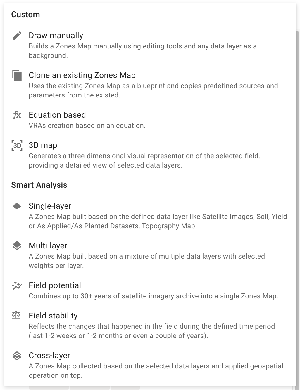PreviousRelease Web August 2024 (Data Layer Previews, Spatially localized Zones; Use zones and Equations in new Equations)NextRelease Web May 2024 (Raw view for Satellite Images, export of Zone Maps as WorkPlan to the John Deere Operations Center, redesign of Batch Analytics)