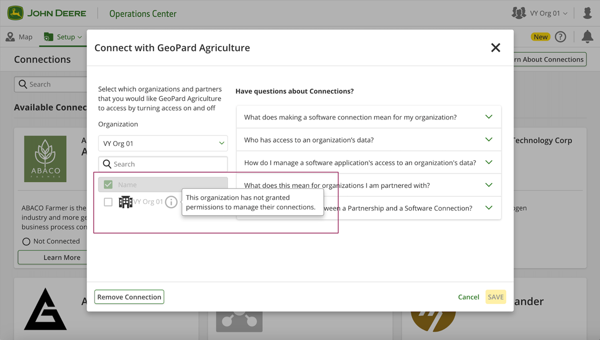 3. The "Share Organization Data with Connected Software Companies" option should be available.\