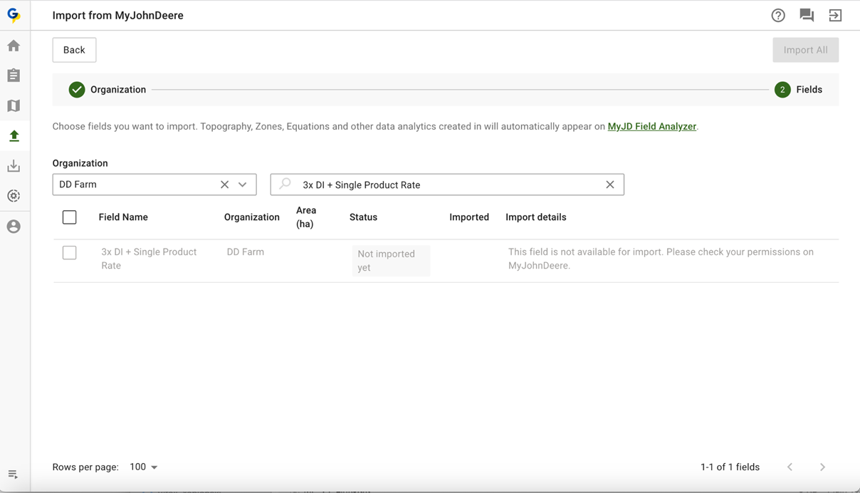 2. The user should go to the "Setup" >> "Land" page (or <https://land-manager.deere.com/>) and check the field's boundary.\